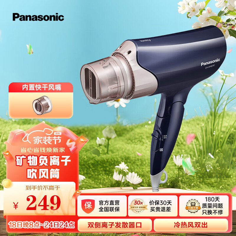 松下(Panasonic)吹风机大功率高速速干折叠便携 负离子护发家用吹头发电吹风筒EH-WNE6C藏青色价格:249.00元!