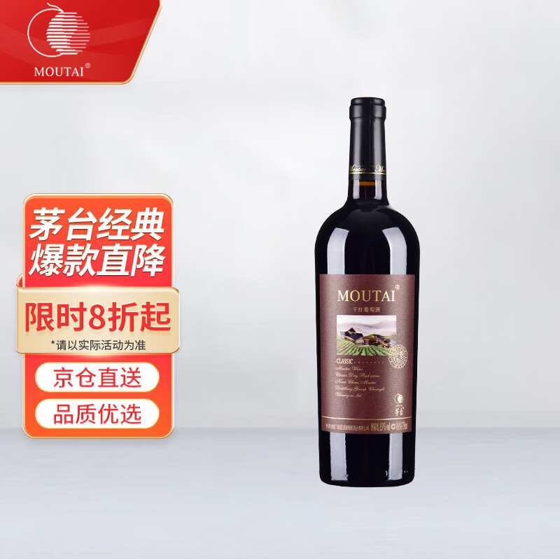 茅台(MOUTAI)经典系列棕标干红葡萄酒750ml 单支装 茅台红酒价格:69.00元!