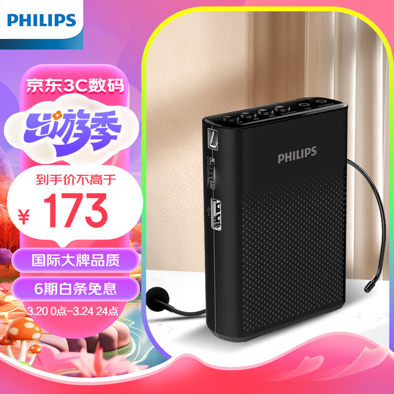 飞利浦(PHILIPS)SBM200 小蜜蜂扩音器便携插卡音箱会议扬声器麦克风喇叭喊话教师导游专用教学讲课户外小巧迷你黑价格:199.00元!