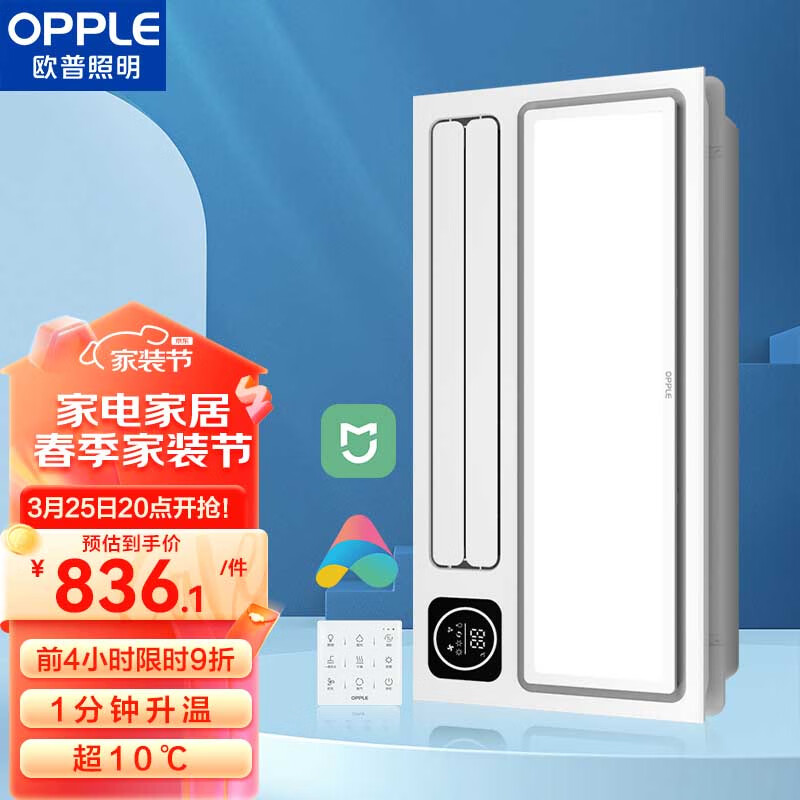 欧普照明(OPPLE)大功率风暖浴霸吊顶米家智控直流变频 F161价格:929.00元!