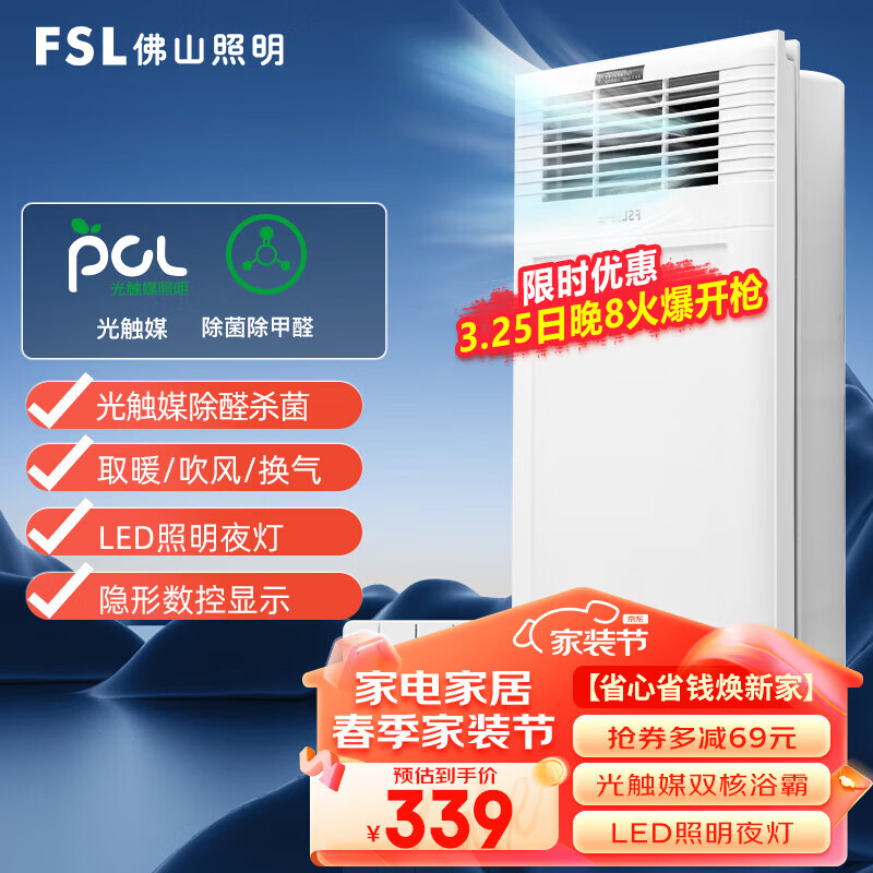FSL佛山照明浴霸集成吊顶卫生间取暖器加热器换气照明光触媒浴霸T1价格:399.00元!