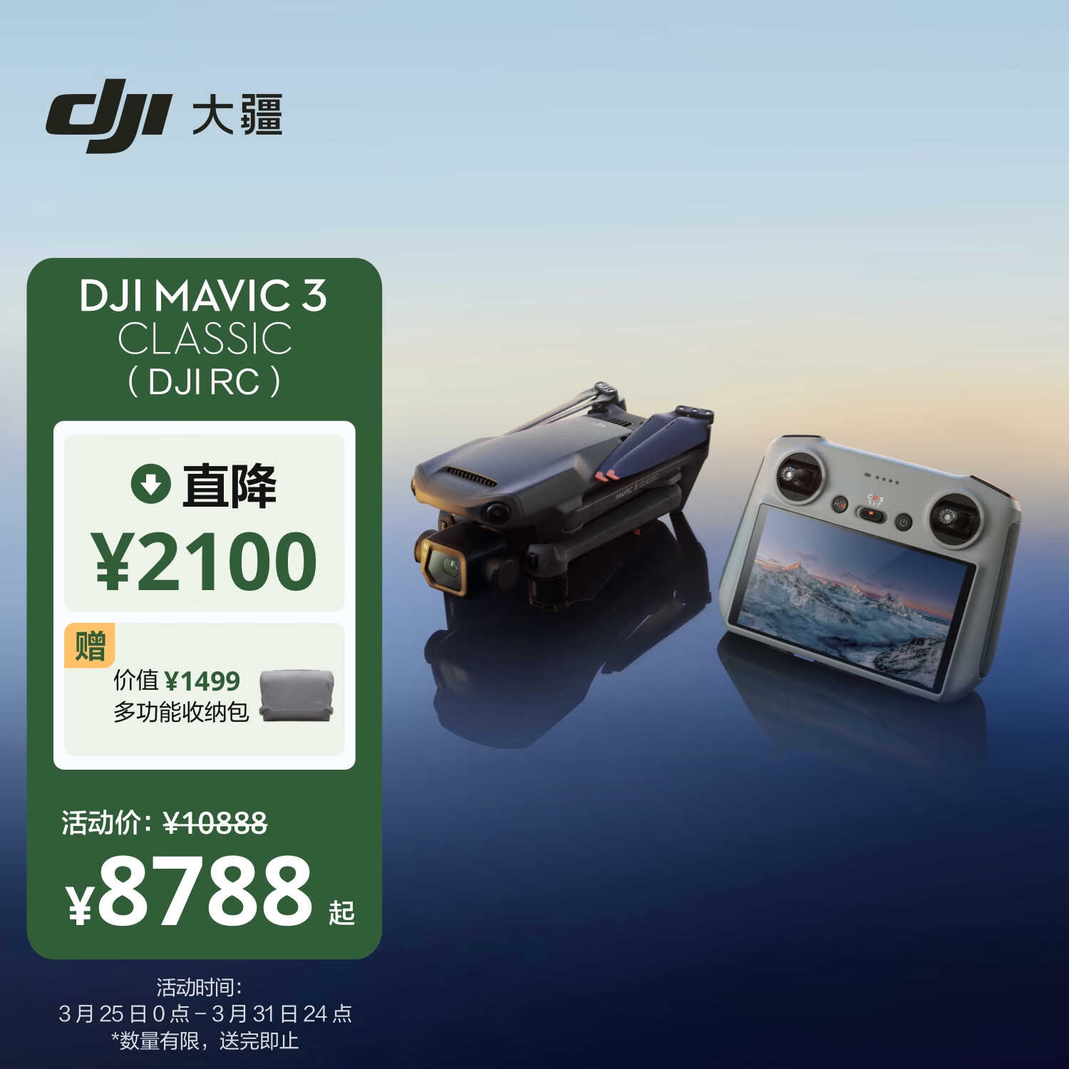 大疆 DJI Mavic 3 Classic (DJI RC) 御3经典版航拍无人机 高 遥控飞机+128G内存卡+随心换1年版实体卡价格:9870.90元!