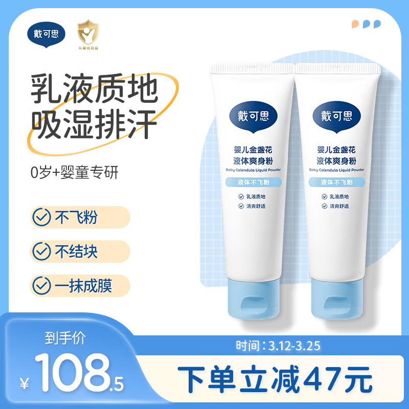 戴·可·思婴儿金盏花液体爽身粉 新生儿宝宝痱子粉 木薯淀粉 50g*2价格:155.50元!