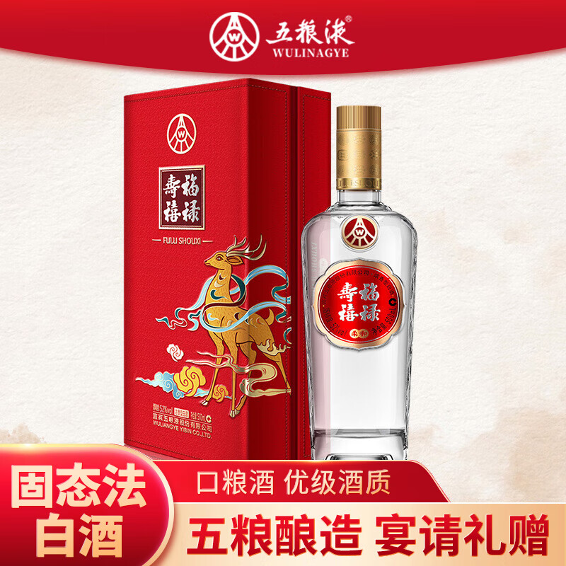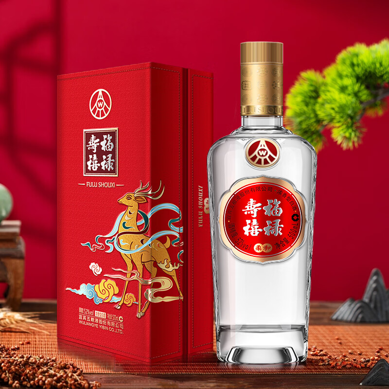 五粮液股份 福禄寿禧 柔和 浓香型白酒 52度500ml单瓶礼盒装 龙年送礼价格:88.00元!