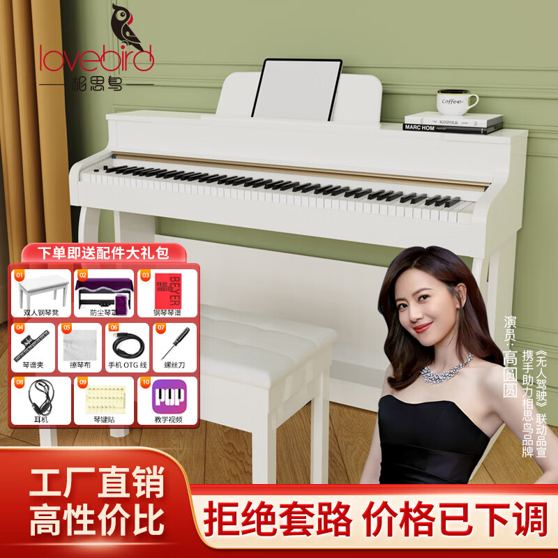 相思鸟 电钢琴88键重锤数码钢琴智能家用初学者立式电子钢琴 亮白烤漆价格:2499.00元!