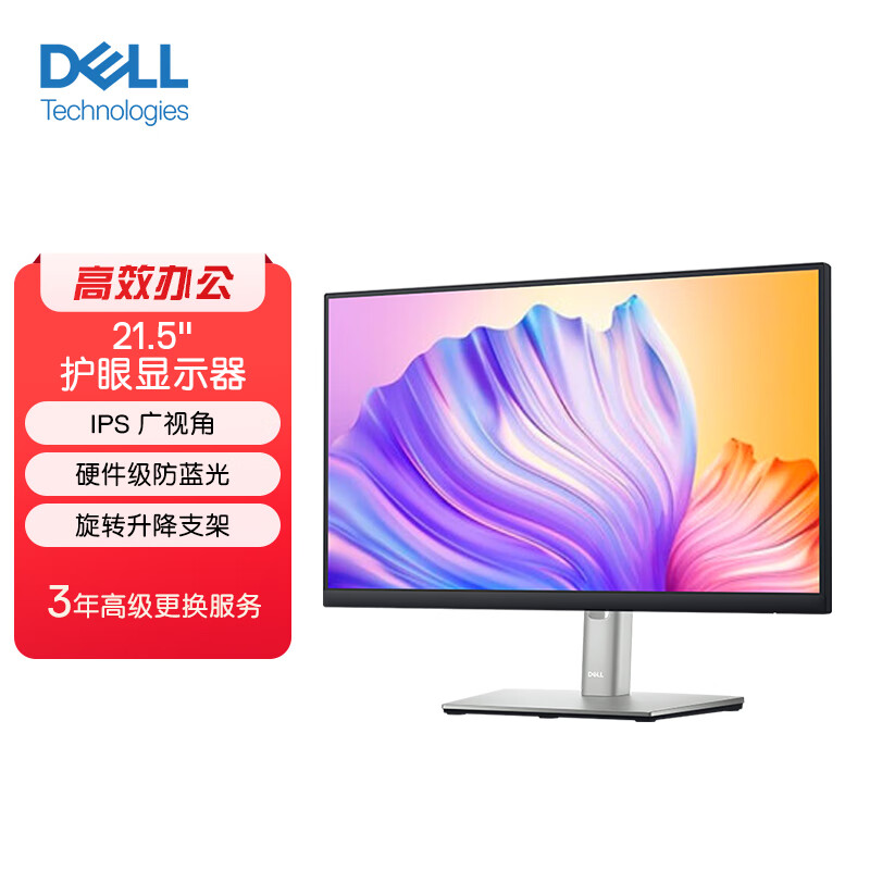 戴尔(DELL)21.5英寸 办公显示器 IPS 硬件级防蓝光 旋转升降支架 微边框 接口丰富 电脑显示器 P2222H价格:1349.00元!