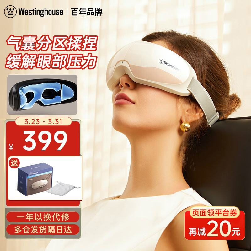 西屋(Westinghouse)EA1眼部按摩器热敷按摩眼罩护眼按摩仪成人眼部按摩仪睡眠眼罩可折叠蓝牙眼睛生日节日礼物实用 EA1白色 生日礼物送父母老婆男女友价格:999.00元!