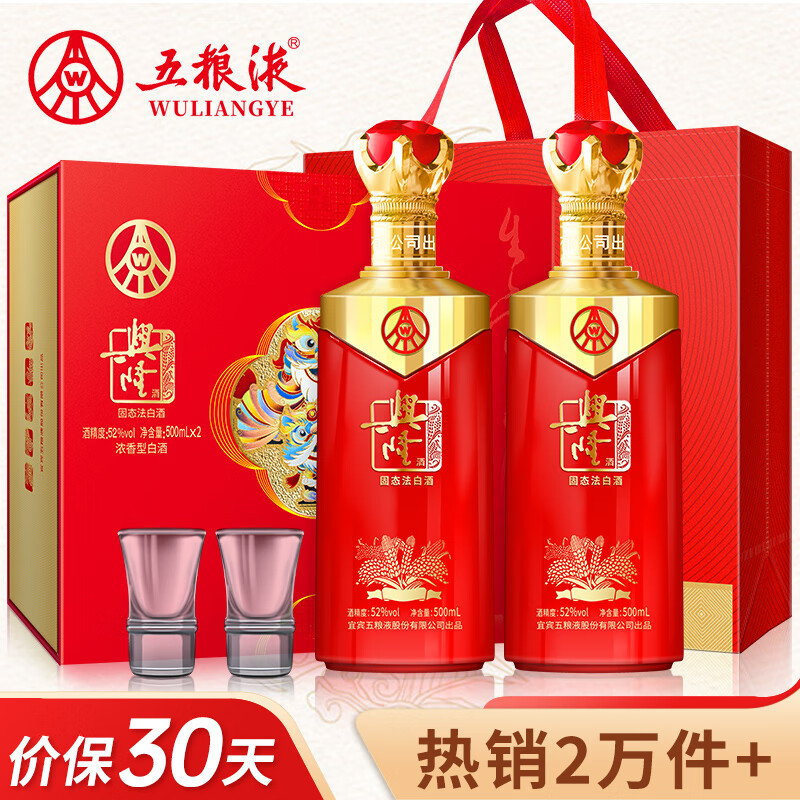 五粮液股份出品 兴隆吉祥如意 浓香型白酒52度500ml*2瓶礼盒装送礼喜酒价格:159.00元!