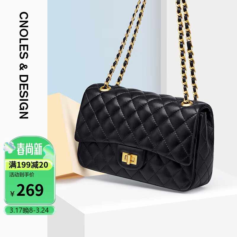 蔻一(Cnoles)包包女包牛皮女士包包百搭单肩包女款链条品牌小方包通勤斜挎包大容量背包生日礼物实用送女友老婆 菱格黑价格:289.00元!