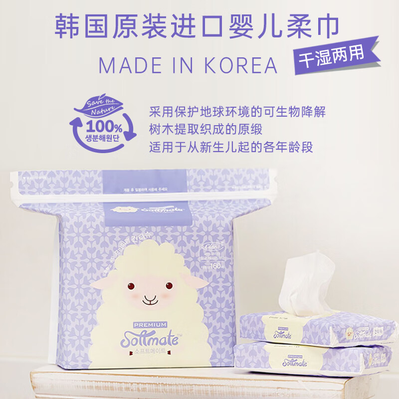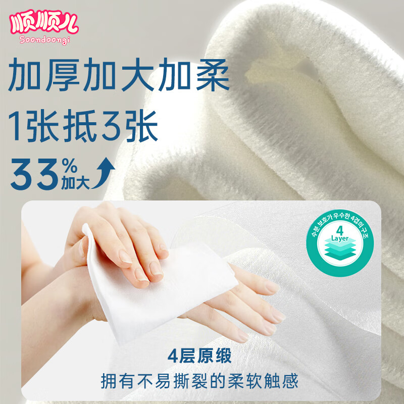 顺顺儿韩国原装进口 婴童适用 干湿两用巾 绵柔巾 160片4包价格:209.00元!