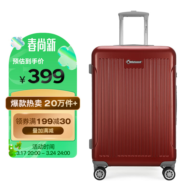 Diplomat外交官行李箱24英寸大容量拉杆箱男扩充层密码旅行箱女TC-6013TM价格:499.00元!