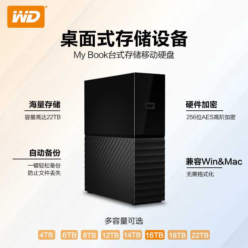 西部数据(WD) 16TB 移动硬盘 USB3.0 桌面存储 My Book 3.5英寸 大容量 机械硬盘 外置外接加密存储兼容Mac价格:3279.00元!