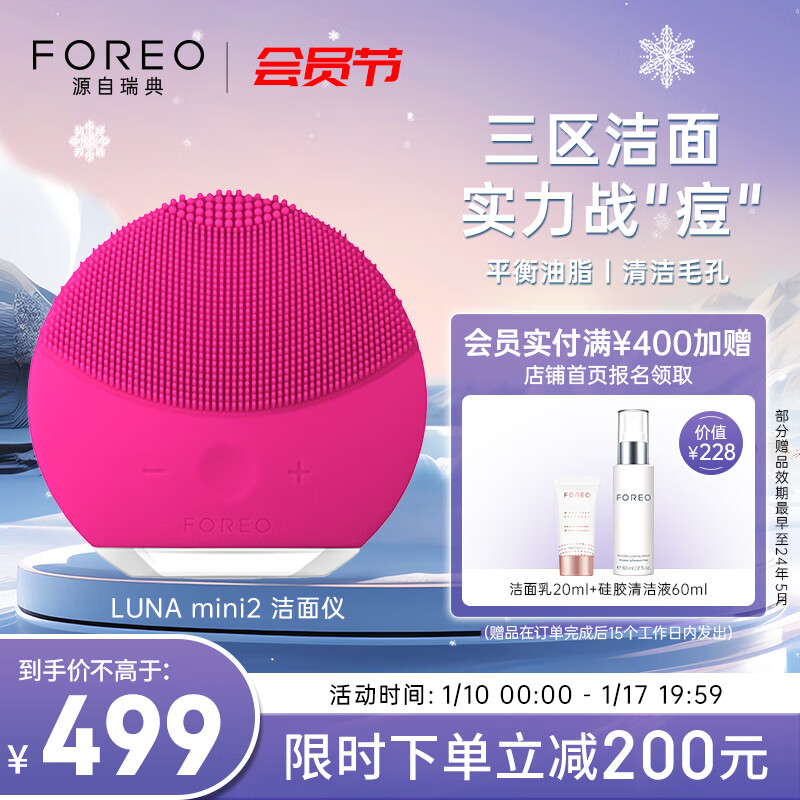 斐珞尔(FOREO)露娜洁面仪LUNA mini2净透洗脸仪电动深度清洁彩妆残留收缩毛孔洗脸神器生日礼物送老婆 樱桃红价格:699.00元!