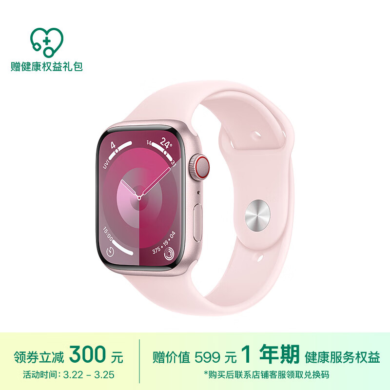 Apple/苹果 Watch Series 9 智能手表GPS+蜂窝款45毫米粉色铝金属表壳亮粉色运动型表带S/M MRPC3CH/A价格:3999.00元!