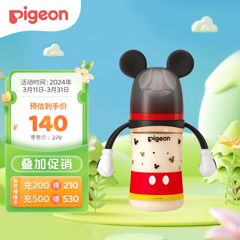 贝亲(Pigeon)迪士尼 第3代 PPSU奶瓶240ml(L号)经典米奇 6个月以上AA238价格:143.30元!