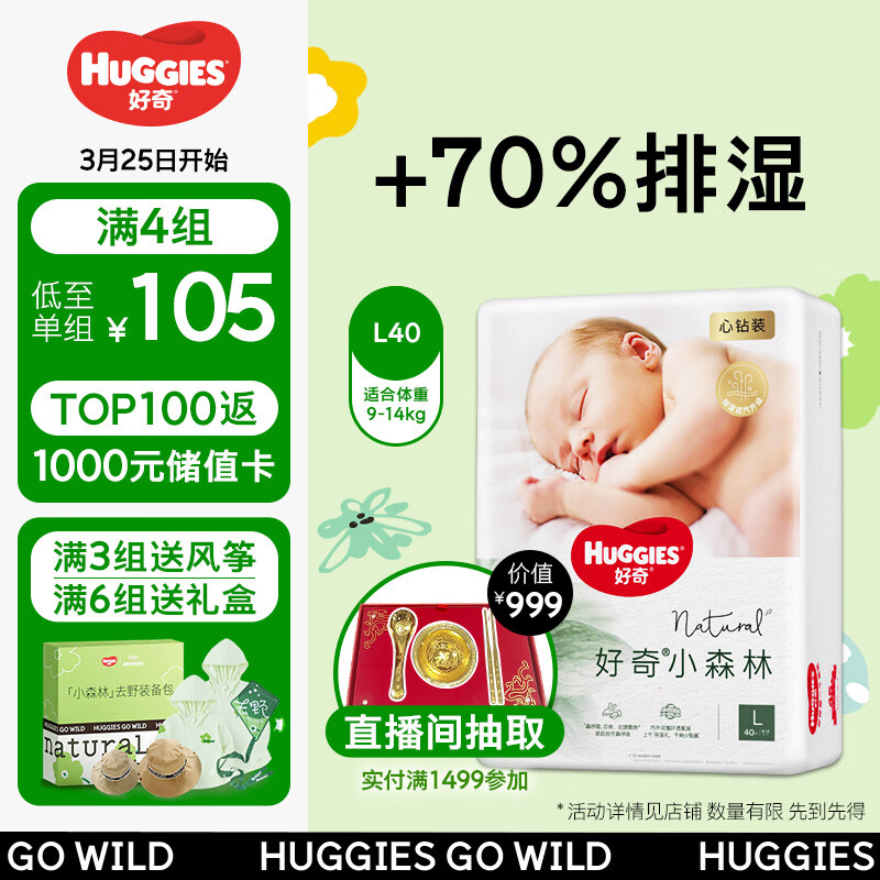 好奇(Huggies)心钻装小森林纸尿裤L40片(9-14kg)大号婴儿尿不湿超薄透气价格:119.30元!