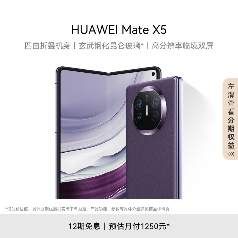 华为(HUAWEI) Mate X5 折叠屏手机 16GB+512GB 幻影紫价格:14999.00元!