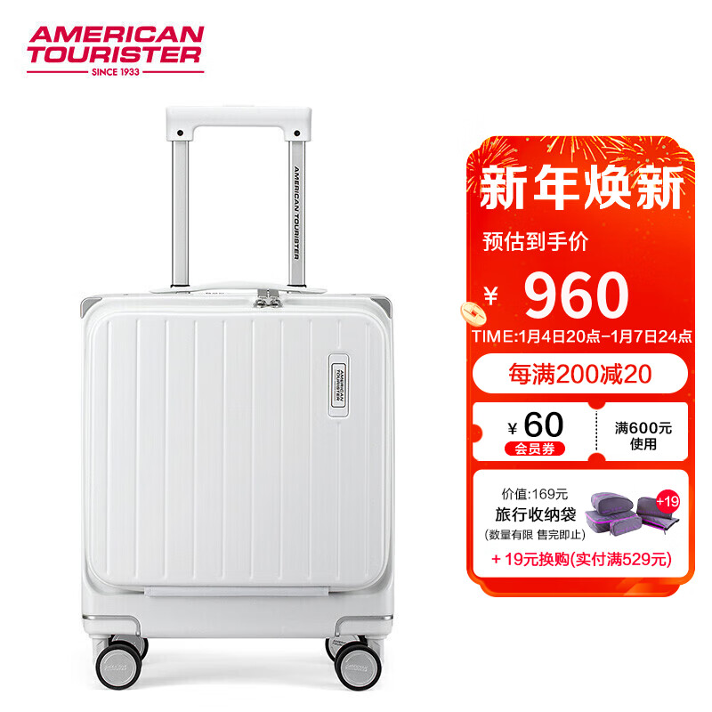 美旅箱包行李箱短途高颜值前开口铝框拉杆箱16英寸TI1白色价格:1120.00元!