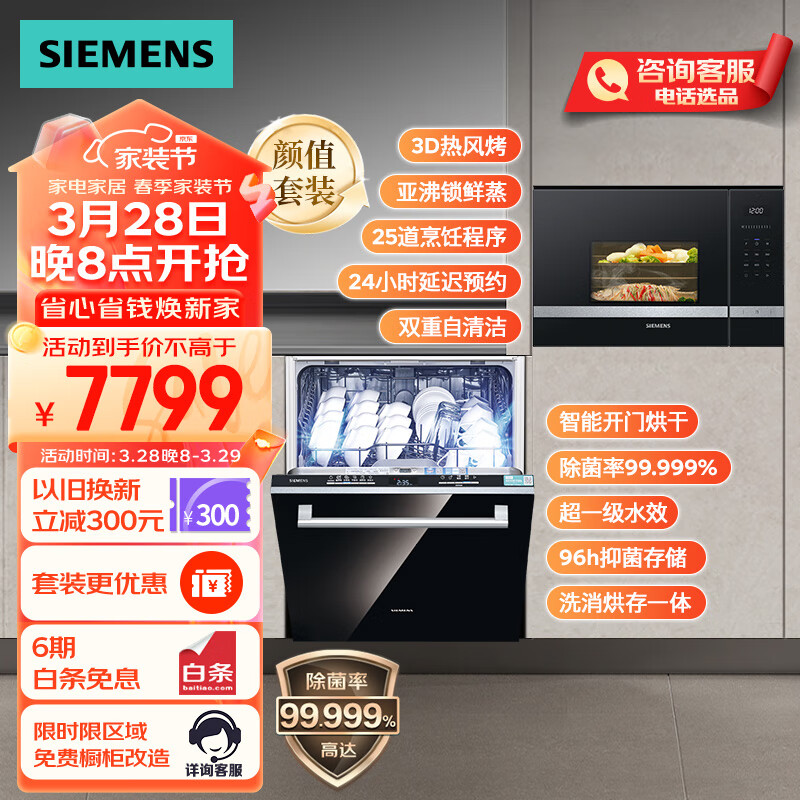 西门子14套大容量嵌入式家用洗碗机智能开门烘干 嵌入式微波炉组合套装 636Pro(含黑门板)+BE525价格:8199.00元!