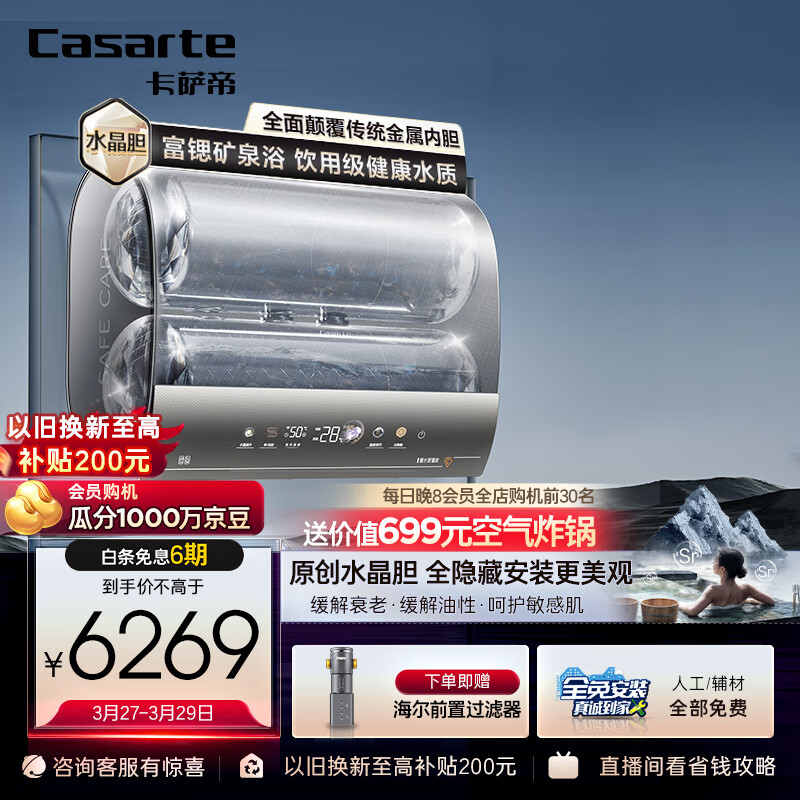 卡萨帝(Casarte)60升星云家用储水式超薄扁桶电热水器原创水晶双胆富锶汤浴变频速热一级能效CES60HD-PROM3CEK03U1价格:6579.00元!