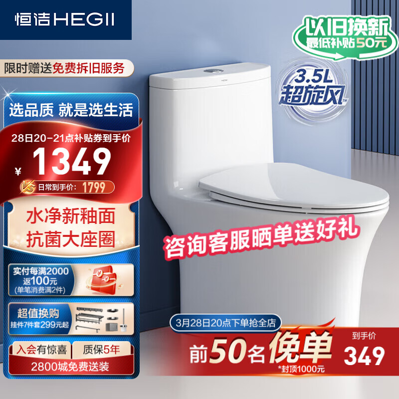 恒洁(HEGII)马桶562 超旋风大冲力虹吸式家用马桶坐便器HC0562DT-305价格:1859.00元!