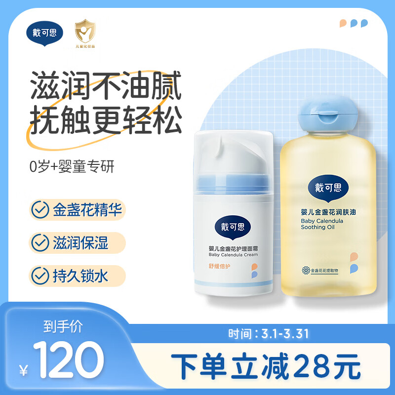 戴·可·思(Dexter)婴儿金盏花护理面霜+润肤油 宝宝保湿补水润肤乳抚触按摩油组合价格:148.00元!
