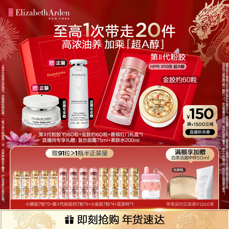 伊丽莎白雅顿第II代粉胶次抛A醇精华+金胶胶囊套组维稳修护补水礼物送朋友价格:1510.00元!