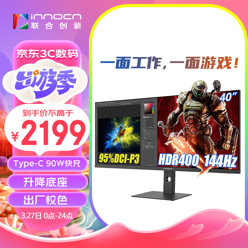 联合创新(INNOCN)40英 带鱼屏 准4K 144Hz显示器IPS HDR Type-C90W旋转升降 电竞游戏电脑显示屏40C1R价格:2599.00元!