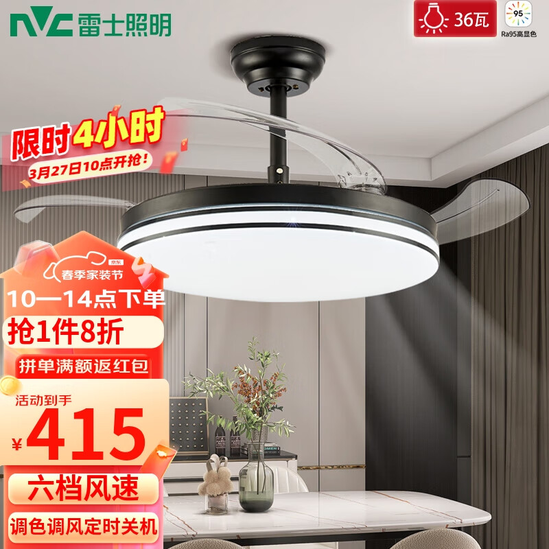 雷士(NVC)风扇灯吊扇灯餐厅卧室现代简约高显指变频黑色42寸36瓦价格:519.00元!