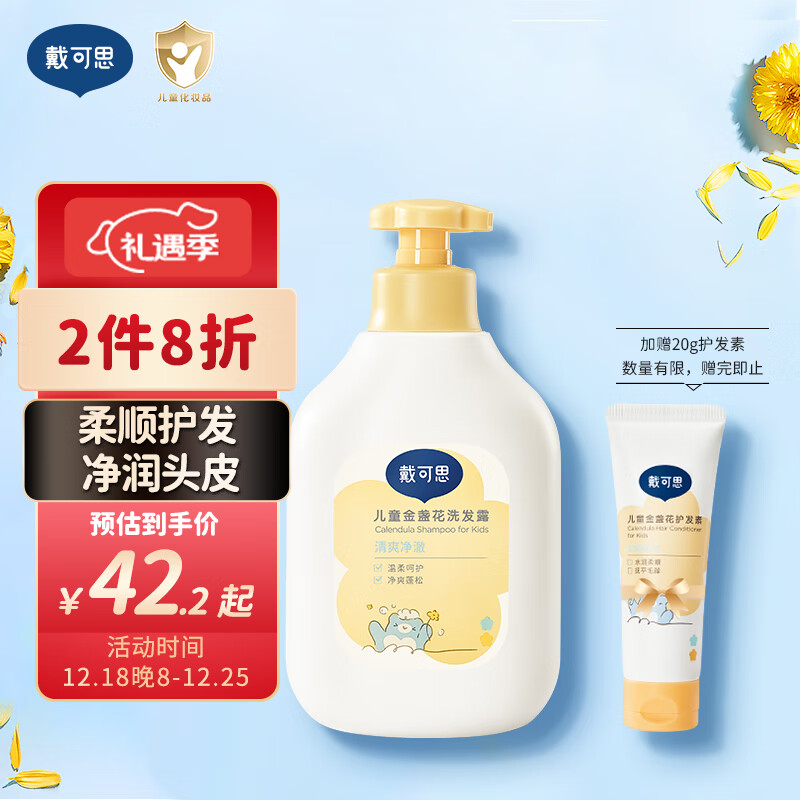 戴·可·思(Dexter)儿童金盏花洗发露 3-15岁宝宝洗发水 氨基酸无硅油温和柔顺350ml价格:59.00元!