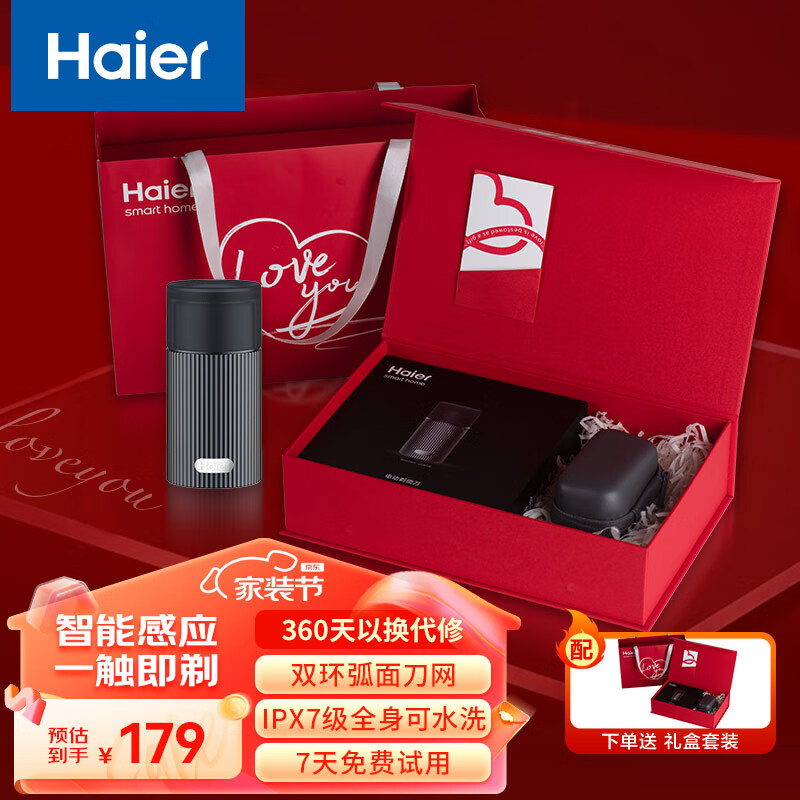海尔(Haier)剃须刀电动智能感应 便携迷你 刮胡须刀 生日父亲节礼物送男友HD11极夜灰 臻选礼盒包装价格:179.00元!