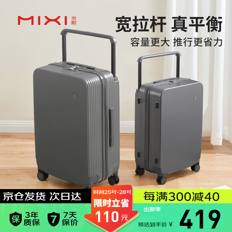 米熙高颜值宽拉杆箱子24英寸行李箱大容量旅行箱子女密码箱包男矿岩灰价格:529.00元!