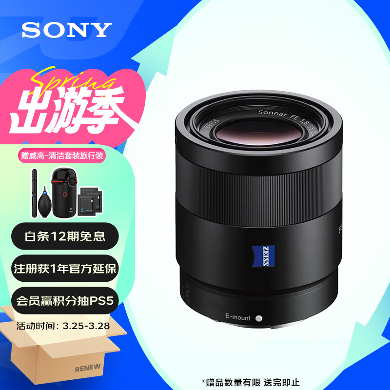 索尼(SONY)微单相机镜头全画幅蔡司标准定焦E卡口(SEL55F18Z)人像 街拍 风光Sonnar T* FE 55mm F1.8 ZA价格:3749.00元!