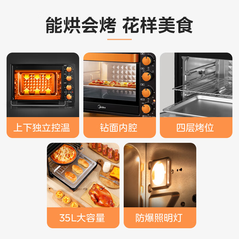 美的(Midea)家用多功能电烤箱 35升大容量烤箱 上下管独立控温 防爆照明灯 四旋钮易操作T3-L326B【仓库2】价格:248.00元!