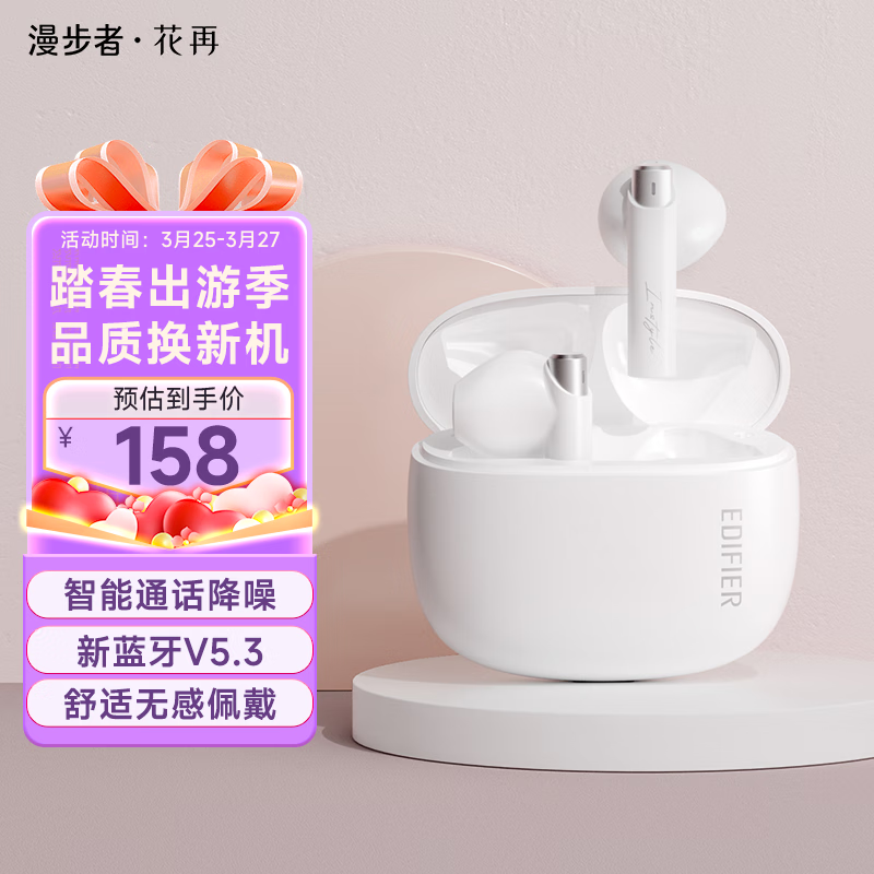 漫步者花再 ZeroBuds 真无线蓝牙耳机 音乐耳机 半入耳式耳机 适用苹果安卓 节日礼物生日礼物 荼白价格:158.00元!
