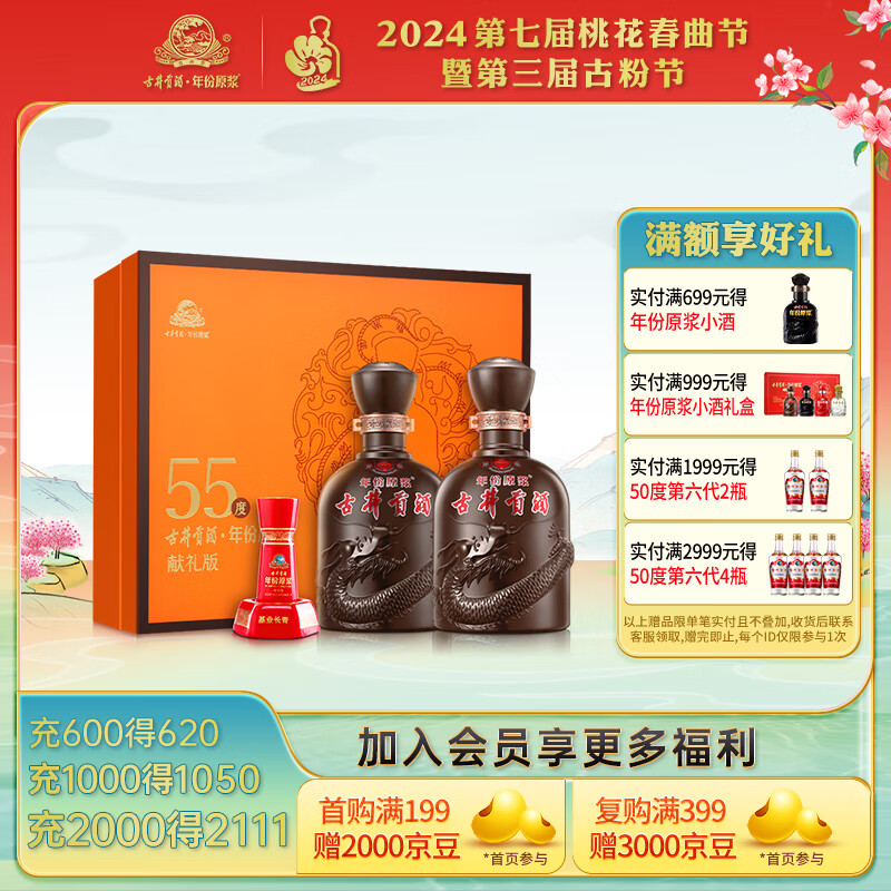 古井贡酒献礼礼盒装 浓香型白酒 55度500ml*2瓶 年货送礼价格:234.12元!