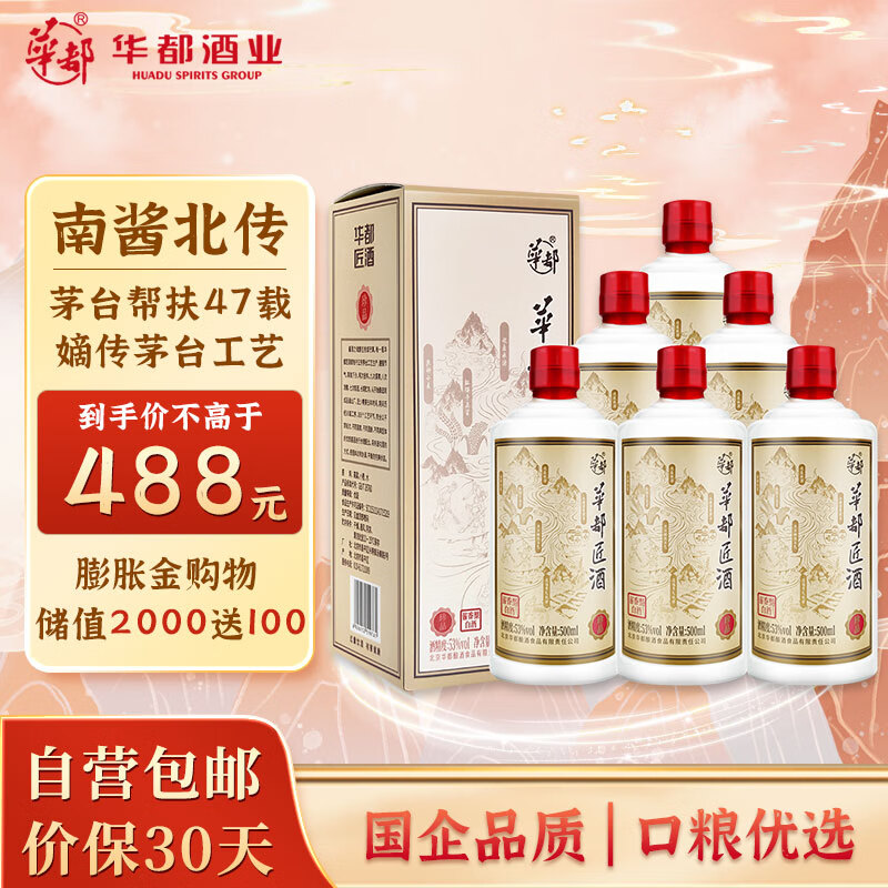 华都匠酒珍品 酱香型白酒53度500ml*6整箱装 高粱粮食口粮酒 宴请送礼价格:518.00元!