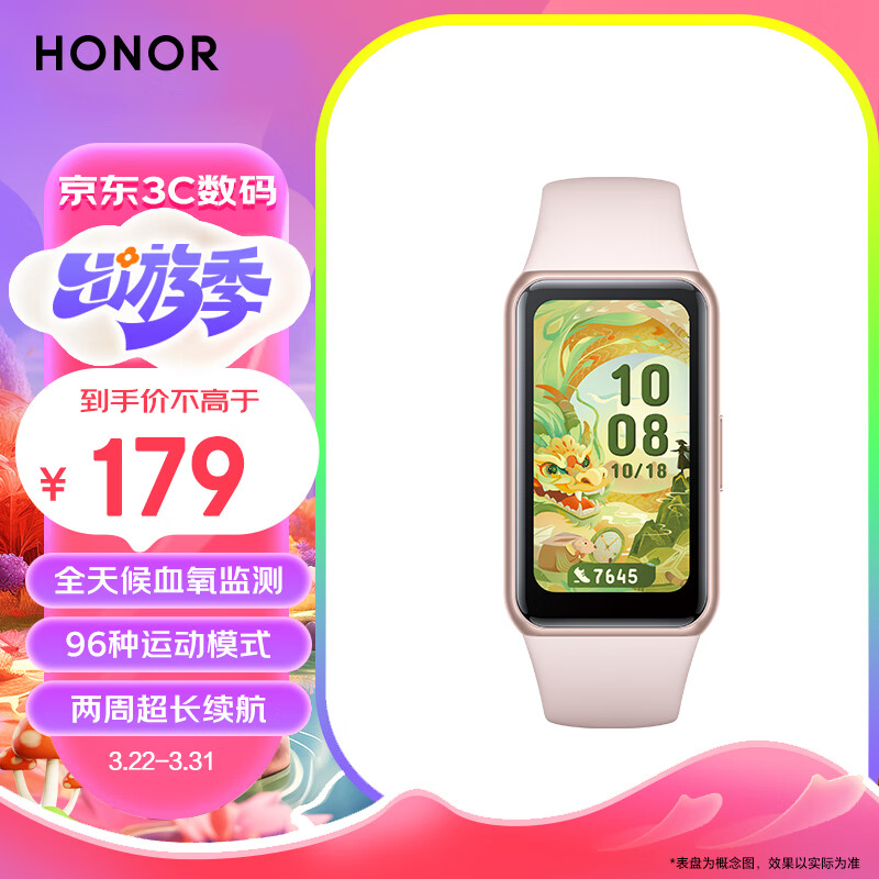 荣耀手环7 全天候血氧监测 96种运动模式 运动智能手环 智能心率 50米防水 蔷薇粉 龙年表盘新年礼物价格:179.00元!