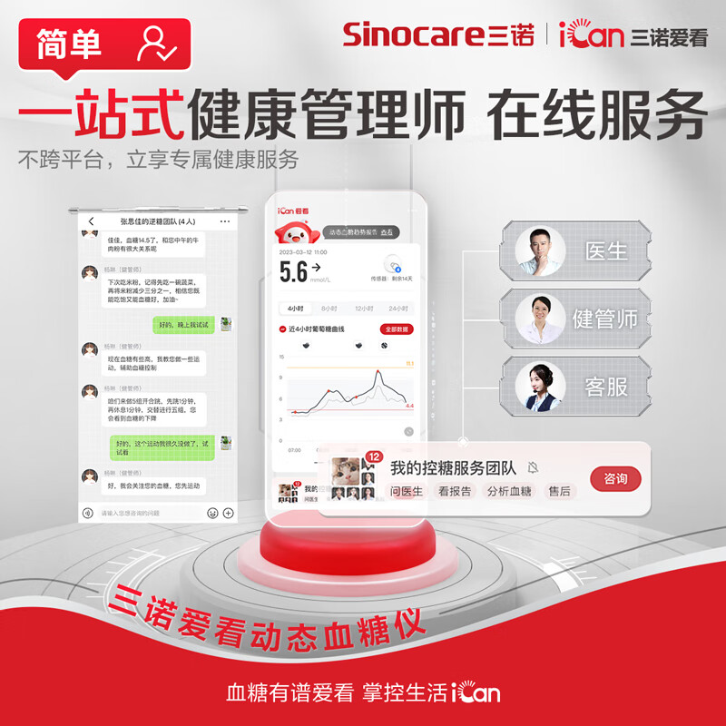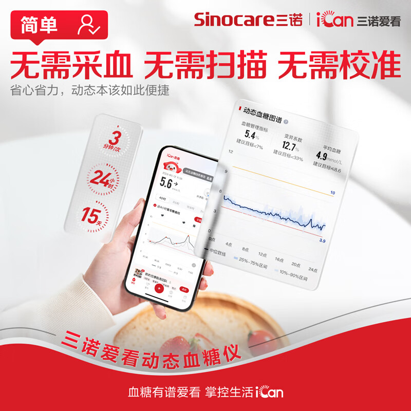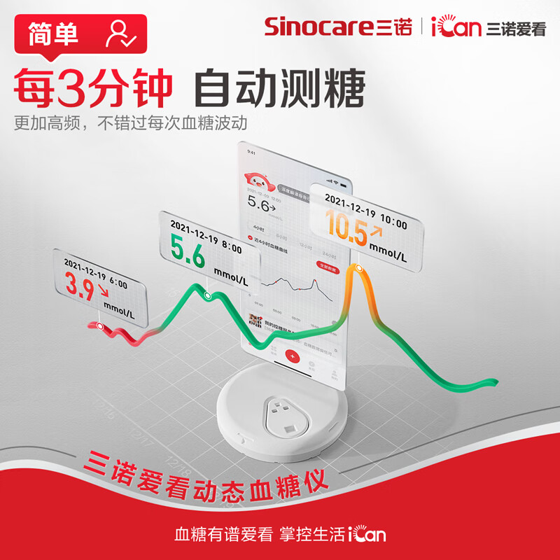 【点击查看三诺爱看动态血糖仪12盒活动分享】
