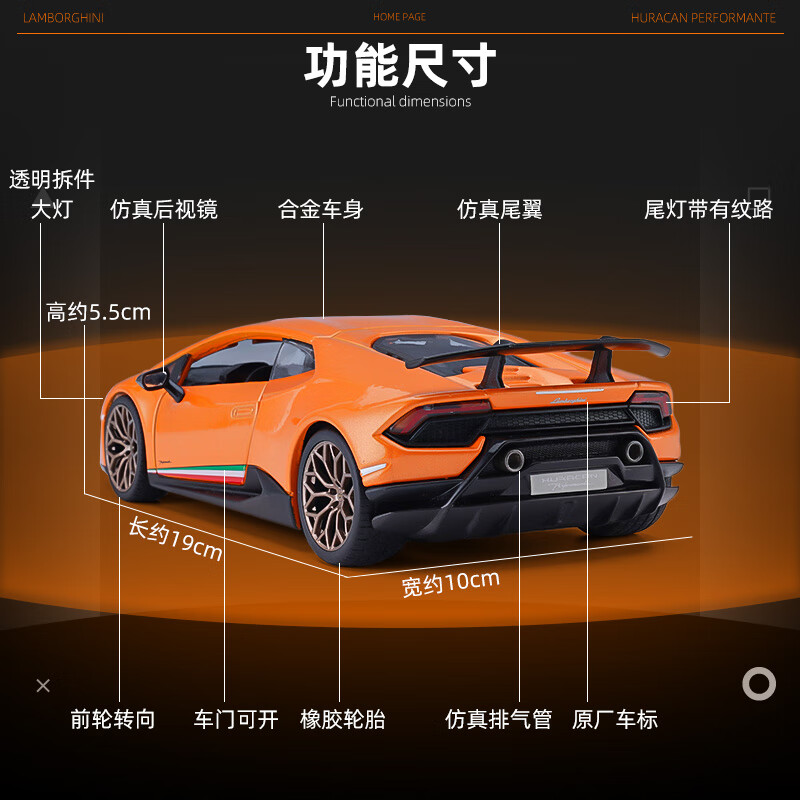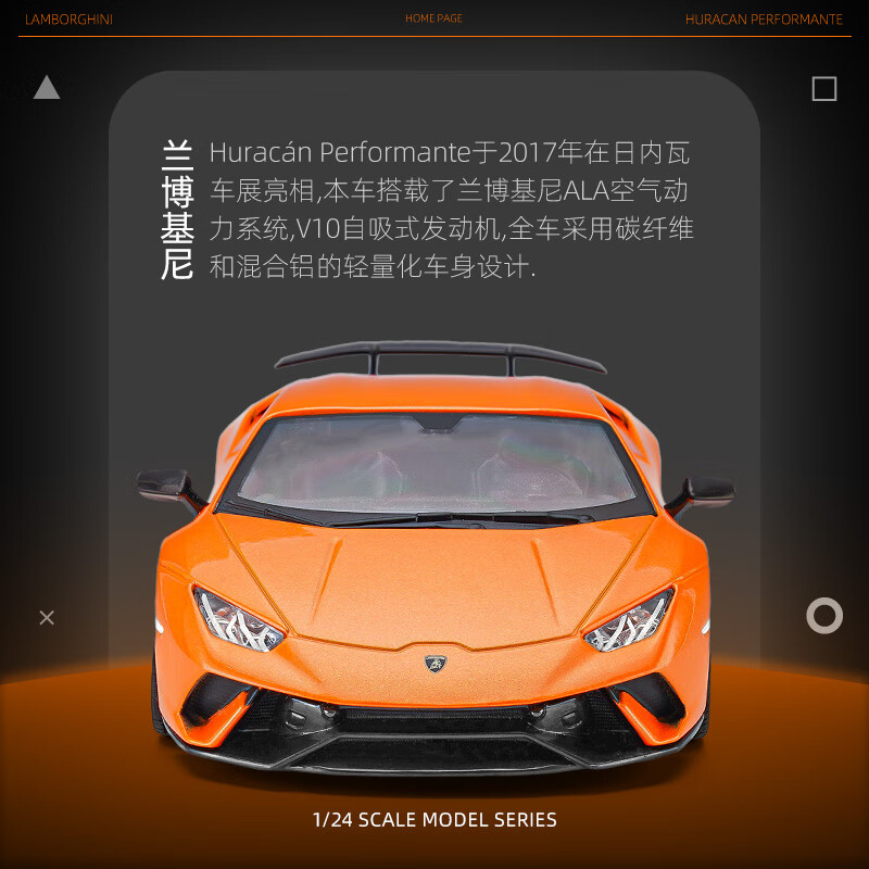 比美高(Burago) 1/24兰博基尼飓风合金儿童玩具仿真车模汽车模型礼物价格:100.00元!