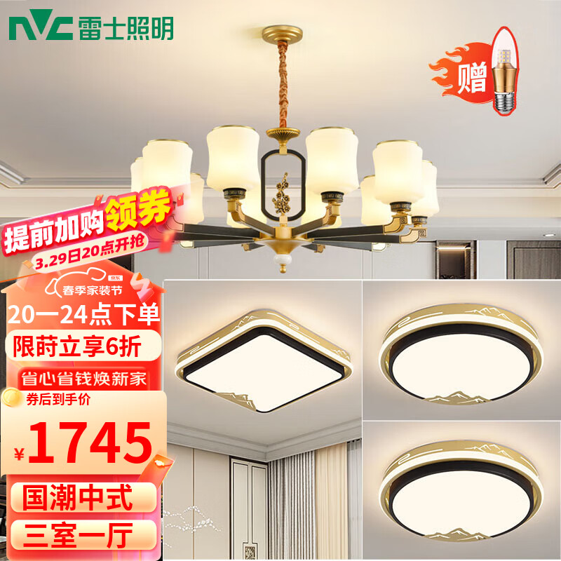 雷士(NVC)新中式吊灯古典国潮客厅灯简约现代灯具10头三室一厅NDBD10A-001价格:3257.00元!