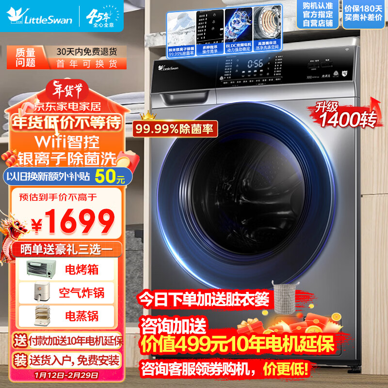 小天鹅(LittleSwan)10公斤滚筒全自动洗衣机水魔方护色护形纳米银离子除菌除螨消毒洗家用大容量一级防缠绕家电洗衣机 滚筒|纳米除菌 TG100VC62WADY价格:1699.00元!