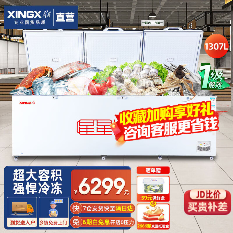 星星(XINGX)冰柜商用大容量一级能效518g冷柜卧式超市厨房雪糕保鲜单温冷藏冷冻转换冷柜 【中梁除霜1级能效】1307L1398GE价格:6299.00元!