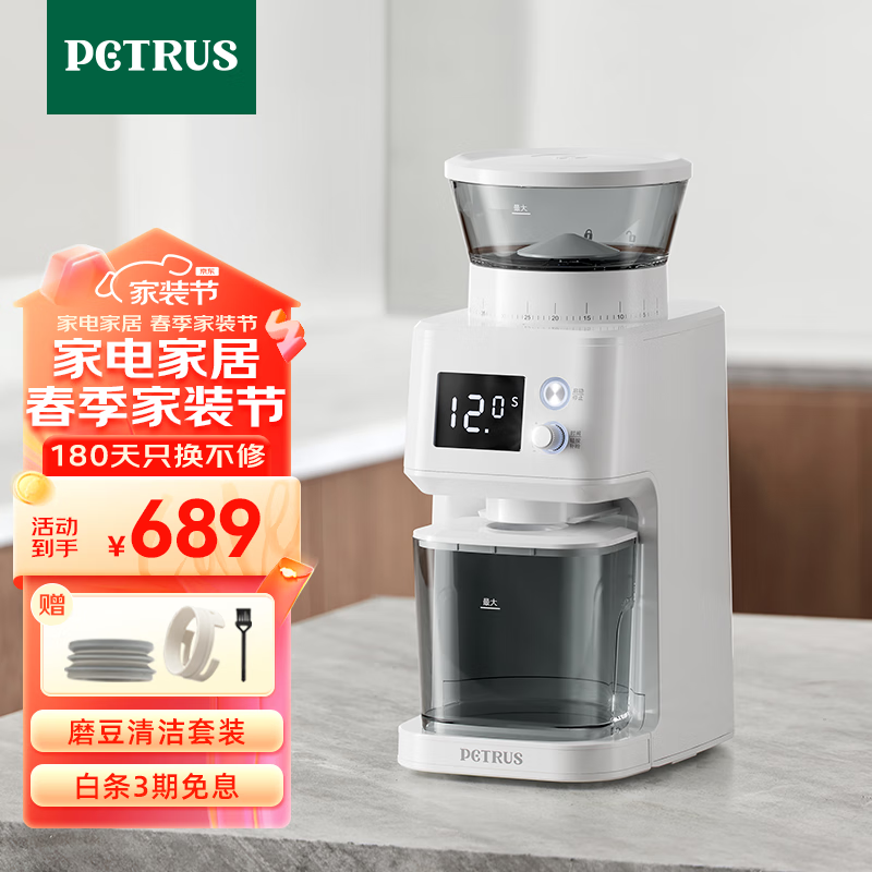 柏翠(petrus)磨豆机研磨机电动全自动咖啡豆家用小型意式磨粉机PE3755S价格:689.00元!