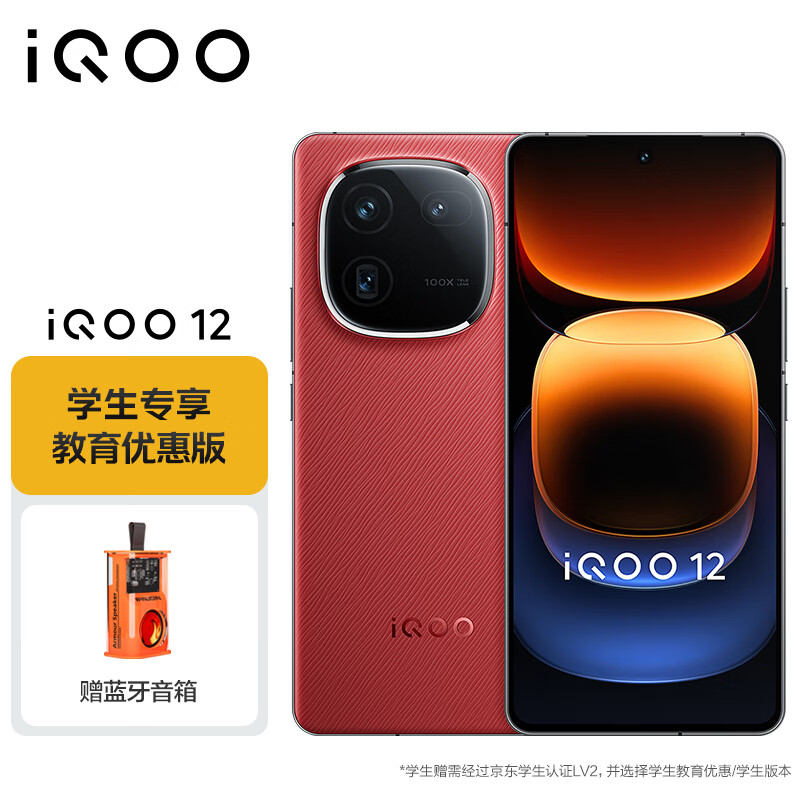 vivo【教育优惠-学生专享价】iQOO 12 12GB+256GB燃途版 第三代骁龙 8 自研电竞芯片Q1 5G手机价格:3799.00元!