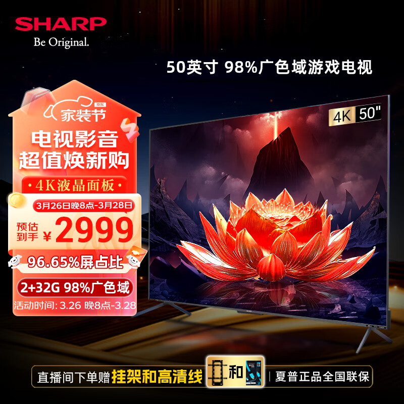 SHARP夏普4T-C50A7EA 50吋 2+32G 98%广色域 HDR10+HLG 96.65%屏占比 杜比解码 4K液晶面板 超薄电视价格:2789.00元!