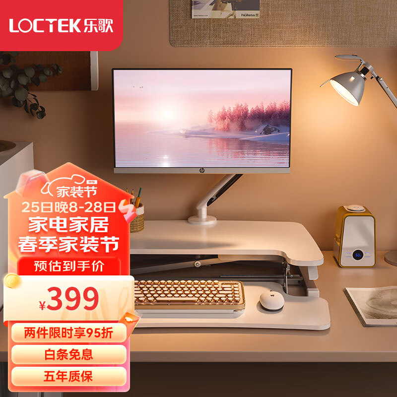 乐歌升降电脑桌站立办公升降台坐站交替家用可折叠桌MX1雅白价格:429.00元!