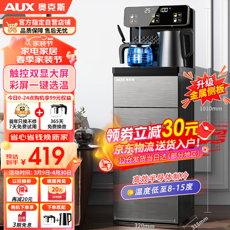 奥克斯(AUX)茶吧机 家用下置桶饮水机智能遥控大屏幕【一键选温】触控双显大屏 冷热型YCB-0.75-27价格:449.00元!