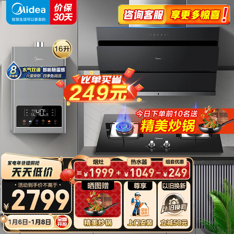 美的(Midea)侧吸抽油烟机灶具烟灶多件套装燃气热水器家用烟灶燃热厨房三件套JN205+Q217B+16TC5S天然气价格:2999.00元!