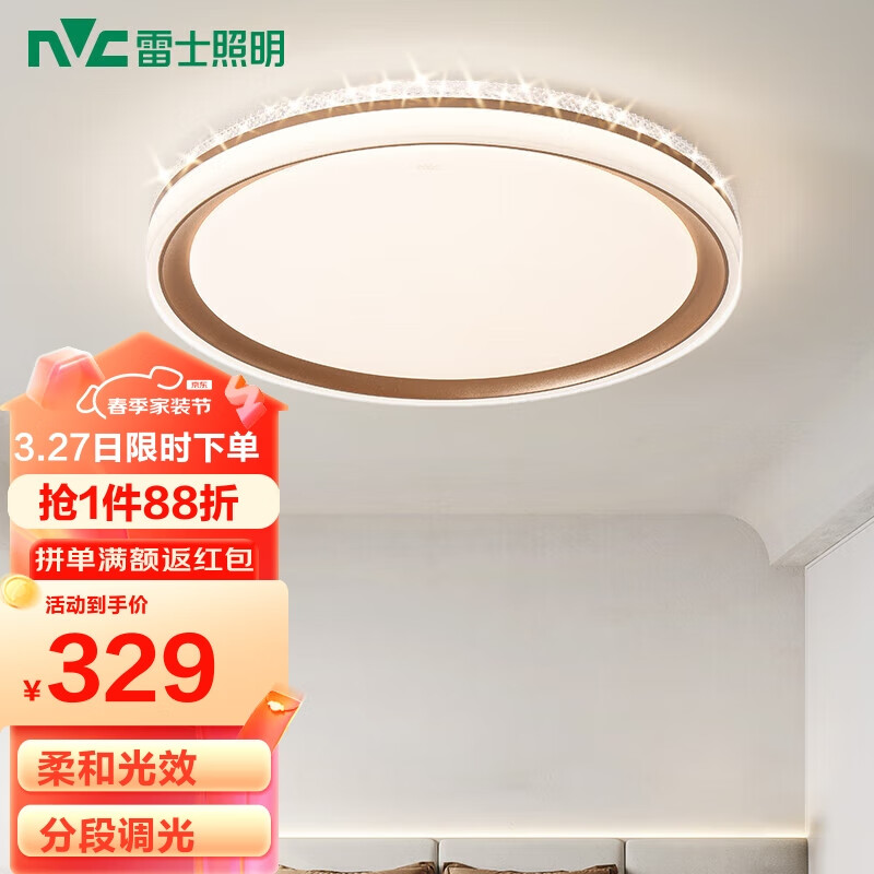 雷士(NVC)LED卧室灯吸顶灯客厅灯餐厅灯圆形现代简约分段调光轻奢灯饰星云价格:329.00元!